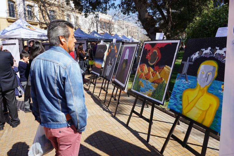 Durante la jornada también alumnos de los ocho colegios pintaron una obra de arte colectiva que también fue presentada al público al finalizar la actividad.
