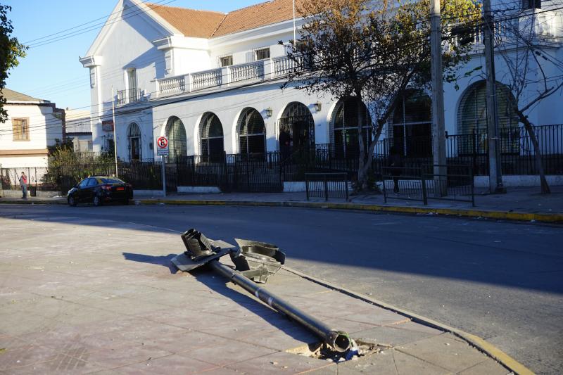 Luego de una tarde de destrozos y saqueos realizados por delincuentes descolgados de las marchas pacíficas convocadas por dirigentes sociales, estas son las imágenes que se podían ver esta mañana en la calles de la capital de la Región de Coquimbo. Semáforos y cámaras de seguridad destrozadas y pequeños locales saqueados.