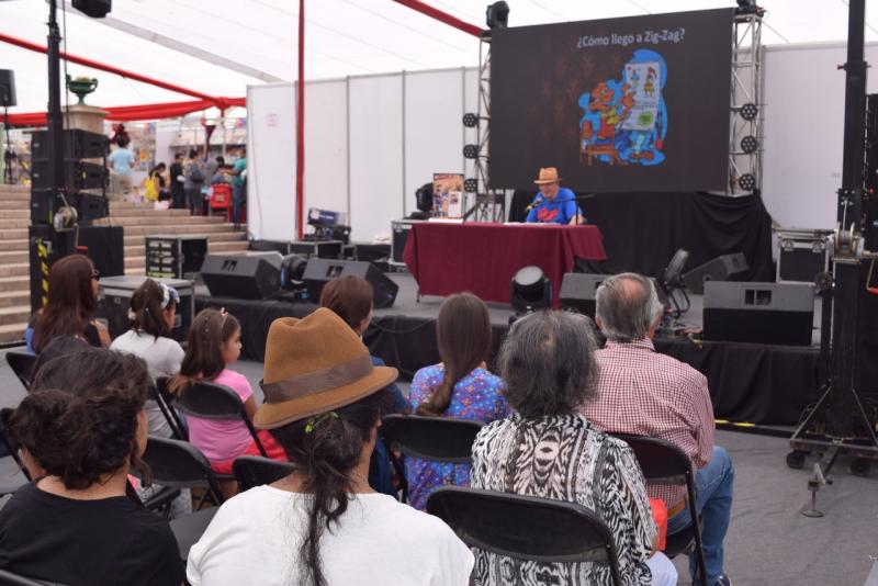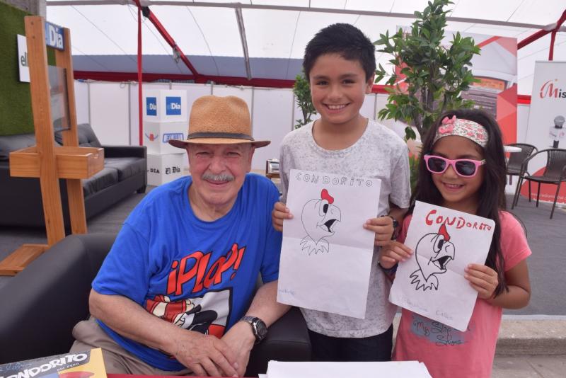 Don Miguel Ortíz realizó ayer un interesante encuentro con el público que visitaba el evento y especialmente con los niños. Allí compartió detalles sobre su paso por la editorial Zig Zag, su trabajo con Themo Lobos, la forma en que conoció al dibujante Pepo, y cómo fueron naciendo los personajes de Condorito.