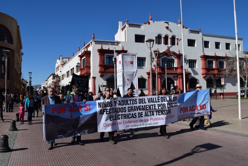 Más de 300 personas marcharon este viernes por las calles de La Serena en rechazo al trazado de las Torres de Alta Tensión del proyecto electrónico Cardones Polpaico. Con carteles y batucadas los manifestantes alertaron a los transeúntes sobre el daño que estos tendidos eléctricos -que cruzan por cuatro regiones del país- estarían produciendo en la salud de los habitantes de los pueblos cercanos. La manifestación se desarrolló con tranquilidad y finalizó en el frontis de la Intendencia Regional, lugar donde entregaron una carta dirigida a la primera autoridad regional, Lucia Pinto. En ella le reiteraron su solicitud de ser recibidos y explicar los daños que están sufriendo.