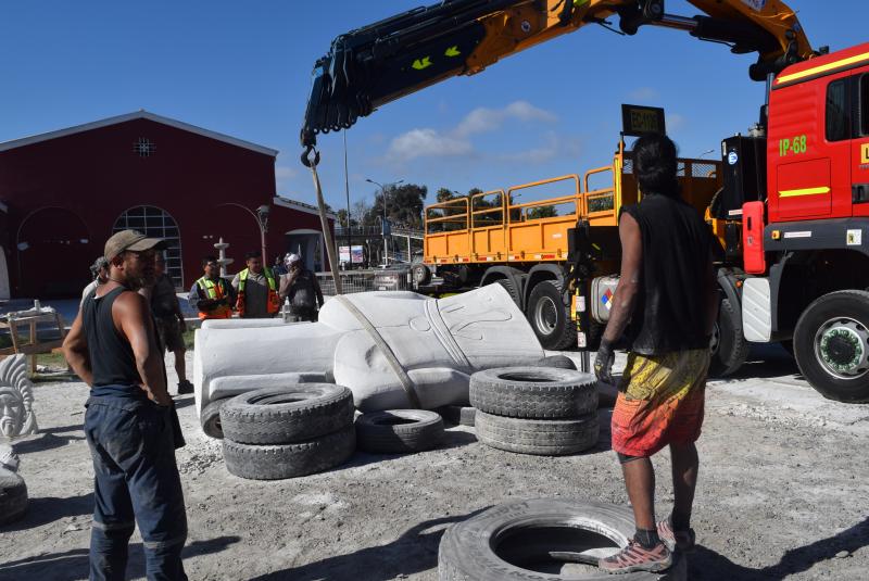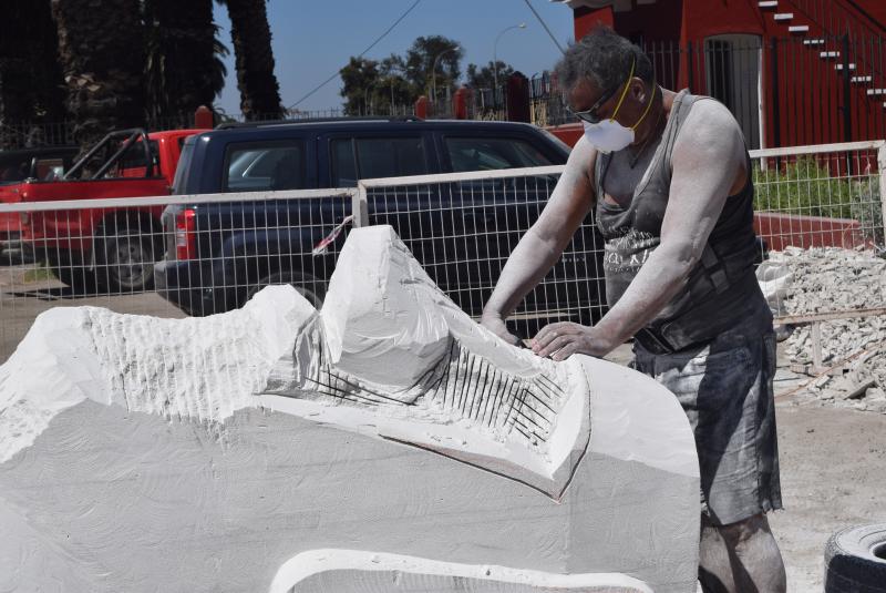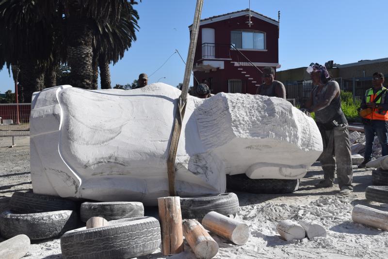 La ceremonia se desarrolló en la Ex Estación de Trenes, lugar donde fue tallado el moái que tiene 3 metros de alto y un metro 20 centímetros de ancho. Para construirlo fue necesario traer una roca de piedra caliza de 14 toneladas sacada desde una cantera ubicada al norte de la ciudad.
