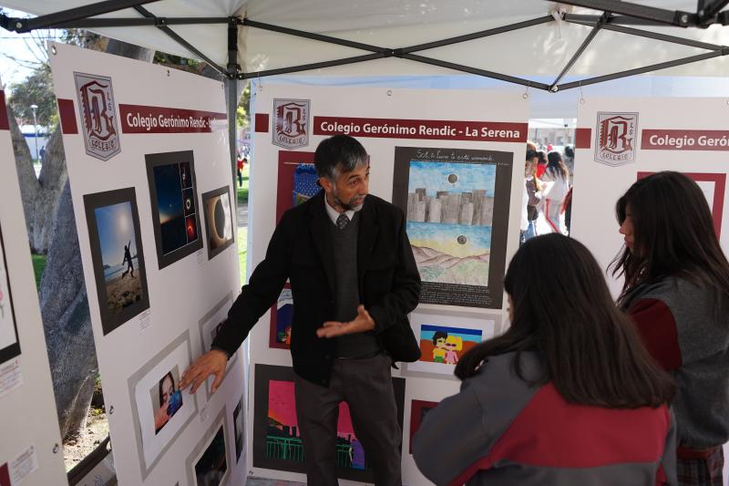 En la Plaza de Armas de La Serena se realizó este jueves la muestra denominada “Como vivimos el Eclipse” organizada Eduelqui, asociación que reúne a los colegios particulares: Colegio San José de La Serena, Colegio Andrés Bello Pampa, Colegio Andrés Bello Centro, Colegio Saint Mary Sindempart, Colegio Saint Mary El Milagro, Colegio del Alba, Colegio Los Carrera y Colegio Gerónimo Rendic.