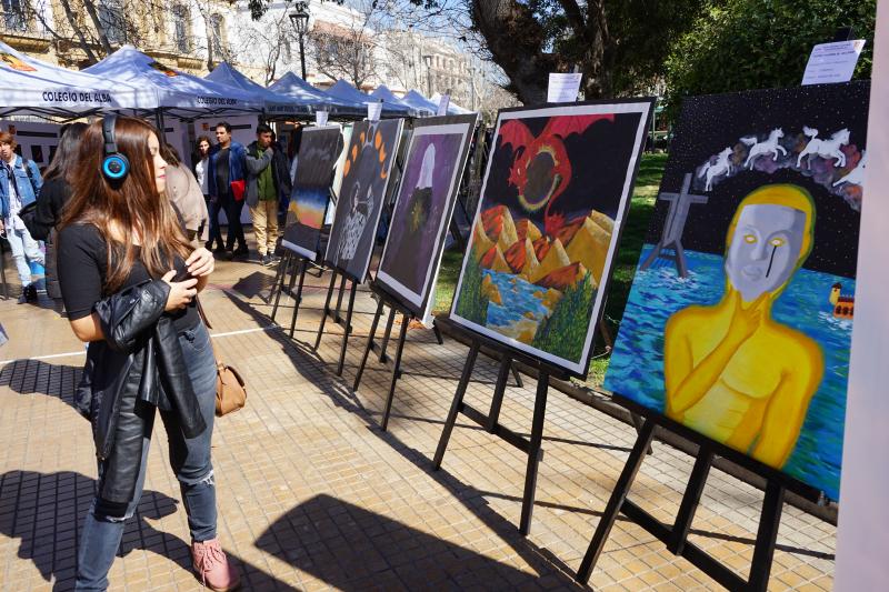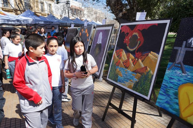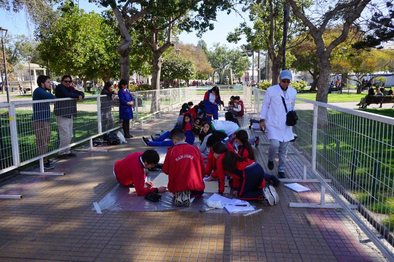 Durante la jornada también alumnos de los ocho colegios pintaron una obra de arte colectiva que también fue presentada al público al finalizar la actividad.