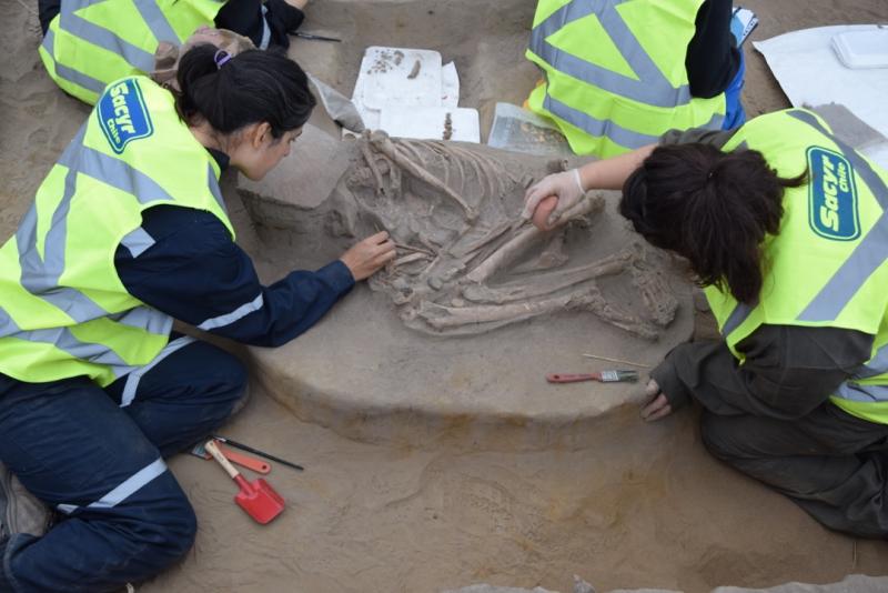 Los trabajos de excavación en el sitio El Olivar finalizaron en agosto de 2017. Se realizaron 14 campañas y se rescataron 212 cuerpos humanos y más de 170 vasijas cerámicas.
