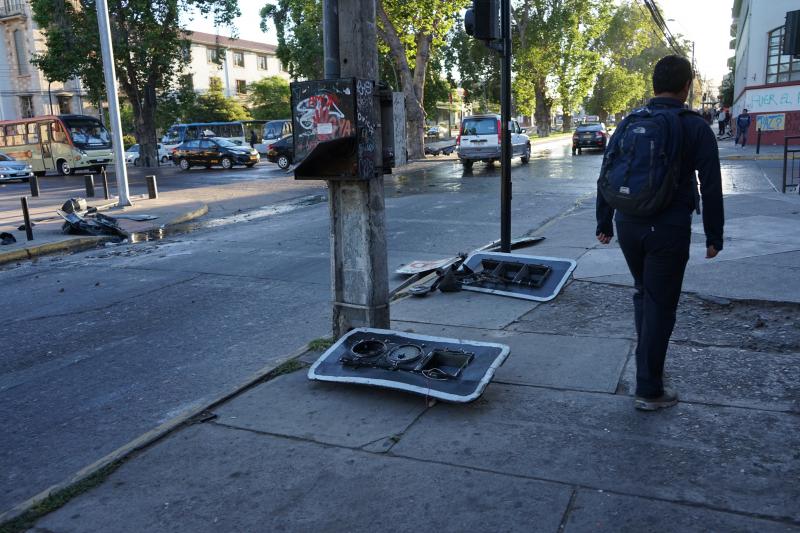 Luego de una tarde de destrozos y saqueos realizados por delincuentes descolgados de las marchas pacíficas convocadas por dirigentes sociales, estas son las imágenes que se podían ver esta mañana en la calles de la capital de la Región de Coquimbo. Semáforos y cámaras de seguridad destrozadas y pequeños locales saqueados.