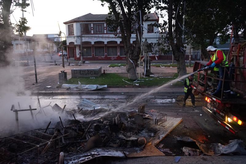 Esta mañana era posible ver parte del mobiliario sacado desde el Hotel Costa Real de La Serena y convertido en barricadas por parte de encapuchados. También era posible apreciar algunos computadores que eran utilizados por la administración del recinto.