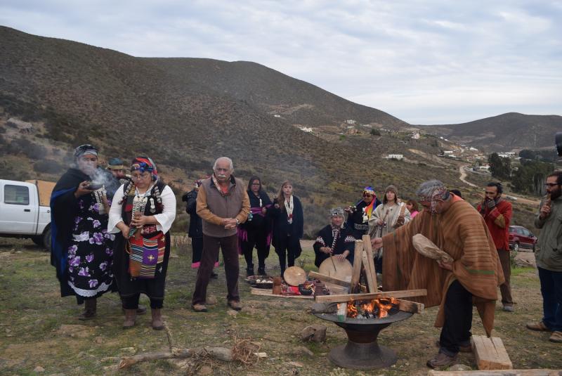 Ceremonia de rogativa de los pueblos originarios en el Cerro Grande de La Serena.