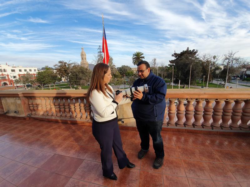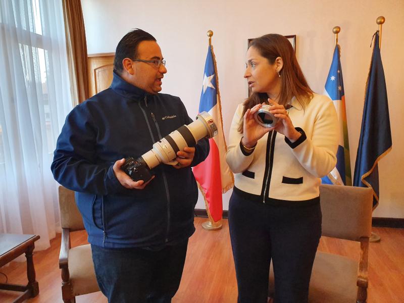 Visita del cazador de eclipses, Iván Castro, a la intendenta regional, Lucía Pinto.