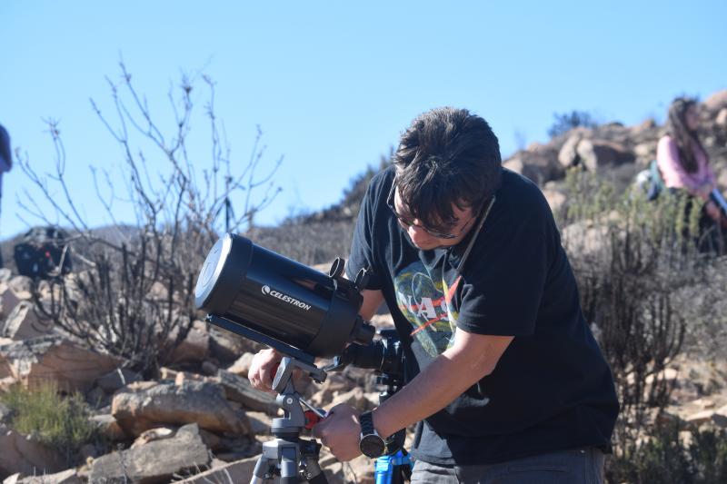 El Cazador de Eclipse, Iván Castro, preparando sus equipo en las horas previas al eclipse.