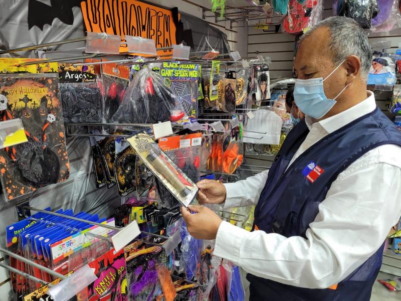 “Debemos vivir Halloween en Modo Covid”, puntualizó el Seremi de Salud, Alejandro García, en el marco de una fiscalización que se realizó en el centro de La Serena para revisar el cumplimiento de la normativa vigente en los locales de venta de productos como disfraces, máscaras, antifaces y golosinas. “Se están revisando las rotulaciones, lo que corresponda a cada edad, y también las advertencias específicas de si tiene productos pequeños que puedan producir asfixia y también que estén lejos del fuego”, explicó la Autoridad Sanitaria.
