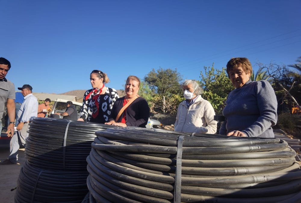 Se entregaron 21 mil metros de mangueras en total, fundamentales para el reinicio de actividades agrícolas con árboles frutales como parras, duraznos, damasco y olivos. Pero no fue todo, porque la empresa Provalle entregó palos de gran diámetro que serán utilizados para el cierre de los huertos.