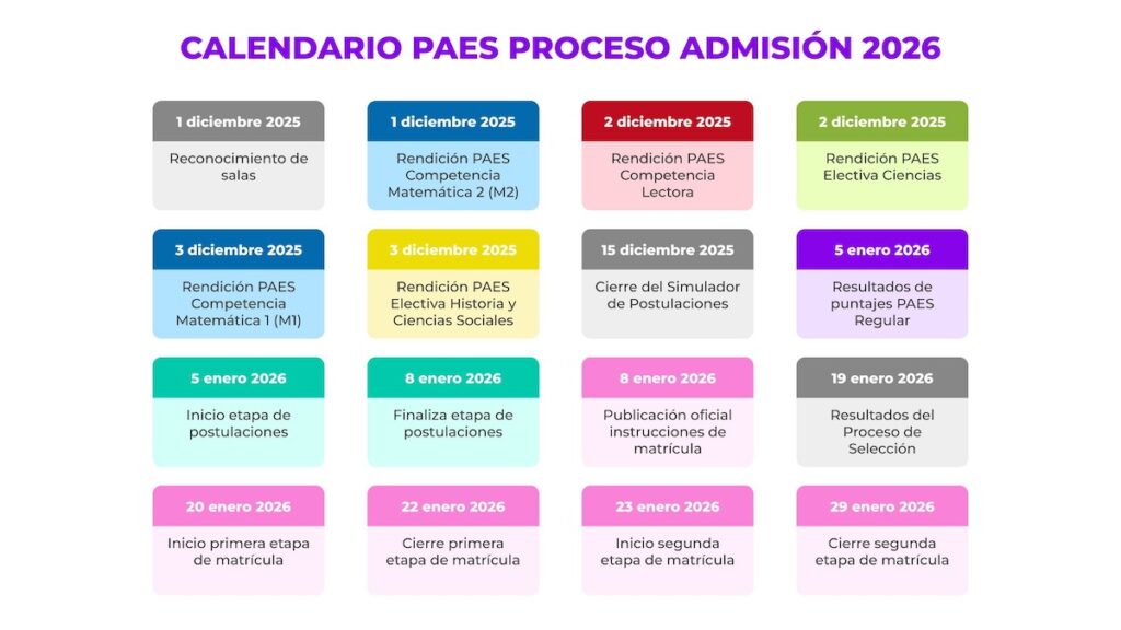 Los resultados de la PAES se publicarán el 5 de enero y el proceso de postulación a las universidades comenzará ese mismo día y se extenderá hasta el 8 de enero de 2026 a las 13:00 hrs.