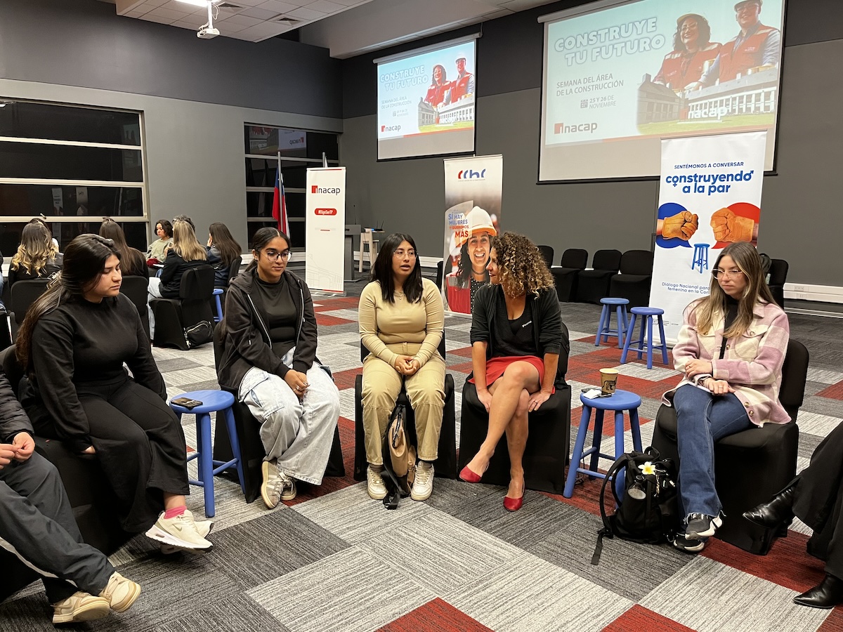 Con el objetivo de abrir espacios de diálogo significativo y trascendente en el mundo de la construcción, la Cámara Chilena de la Construcción (CChC) en coordinación con INACAP realizó una nueva versión de “Sentémonos a Conversar”, instancia que en esta ocasión tuvo como objetivo transmitir las experiencias de mujeres que se desempeñan de manera activa y exitosa en el rubro de la construcción a las estudiantes de Técnico en Construcción, Construcción Civil, Técnico en Topografía y Geomática e Ingeniería en Geomensura y Geomática de INACAP.