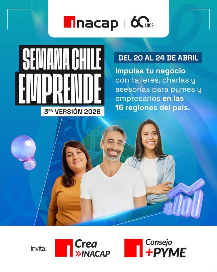 Del 20 al 24 de abril, se llevará a cabo la tercera versión de la Semana Chile Emprende, un evento de alcance nacional impulsado por INACAP que contempla casi 400 actividades en todo el país. Esta instancia busca abordar las brechas y desafíos del ecosistema emprendedor, conectando a los negocios con referentes del sector público y privado para potenciar la empleabilidad y el desarrollo local.